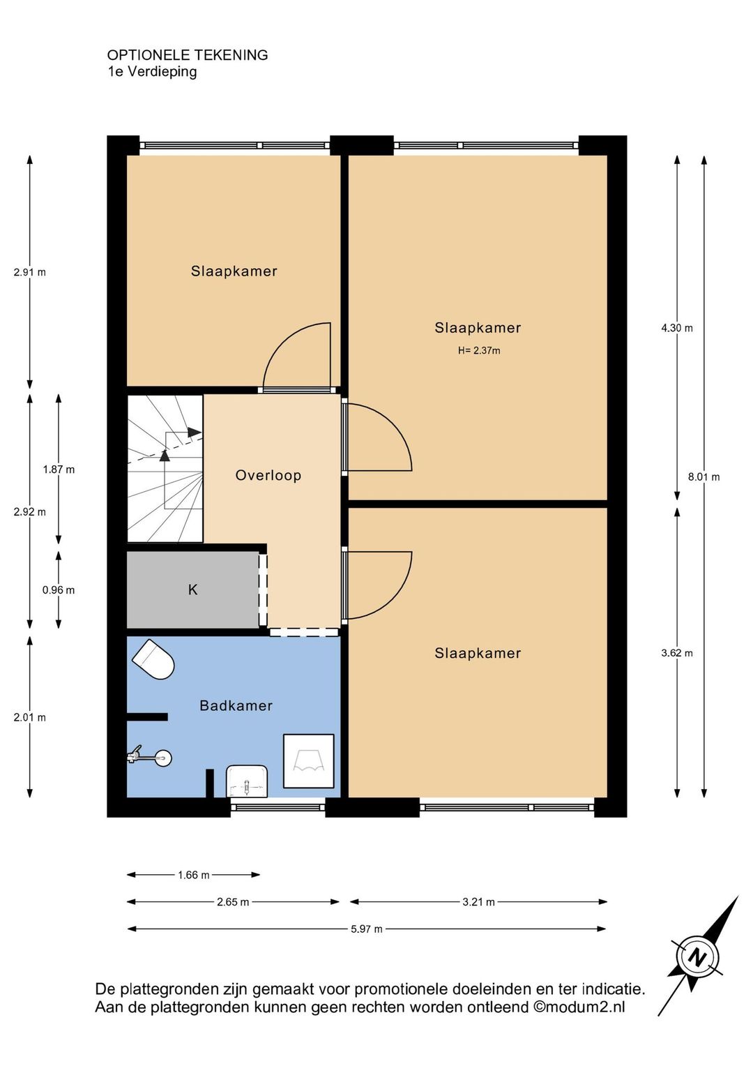 Overloop met diepe bergkast, zeer ruime ouderslaapkamer (gemakkelijk op te delen in twee aparte slaapkamers van 4.30x3.21 en 3.62x3.21) en een achter-zijslaapkamer (2.91x2.65). Alle slaapkamers hebben elektrisch bedienbare rolluiken, zowel voor als achter. Aan de voorzijde is de geheel betegelde badkamer (2.01x2.65) met douche. Voorzien van een 2de toilet, wastafel en aansluiting voor de wasmachine.